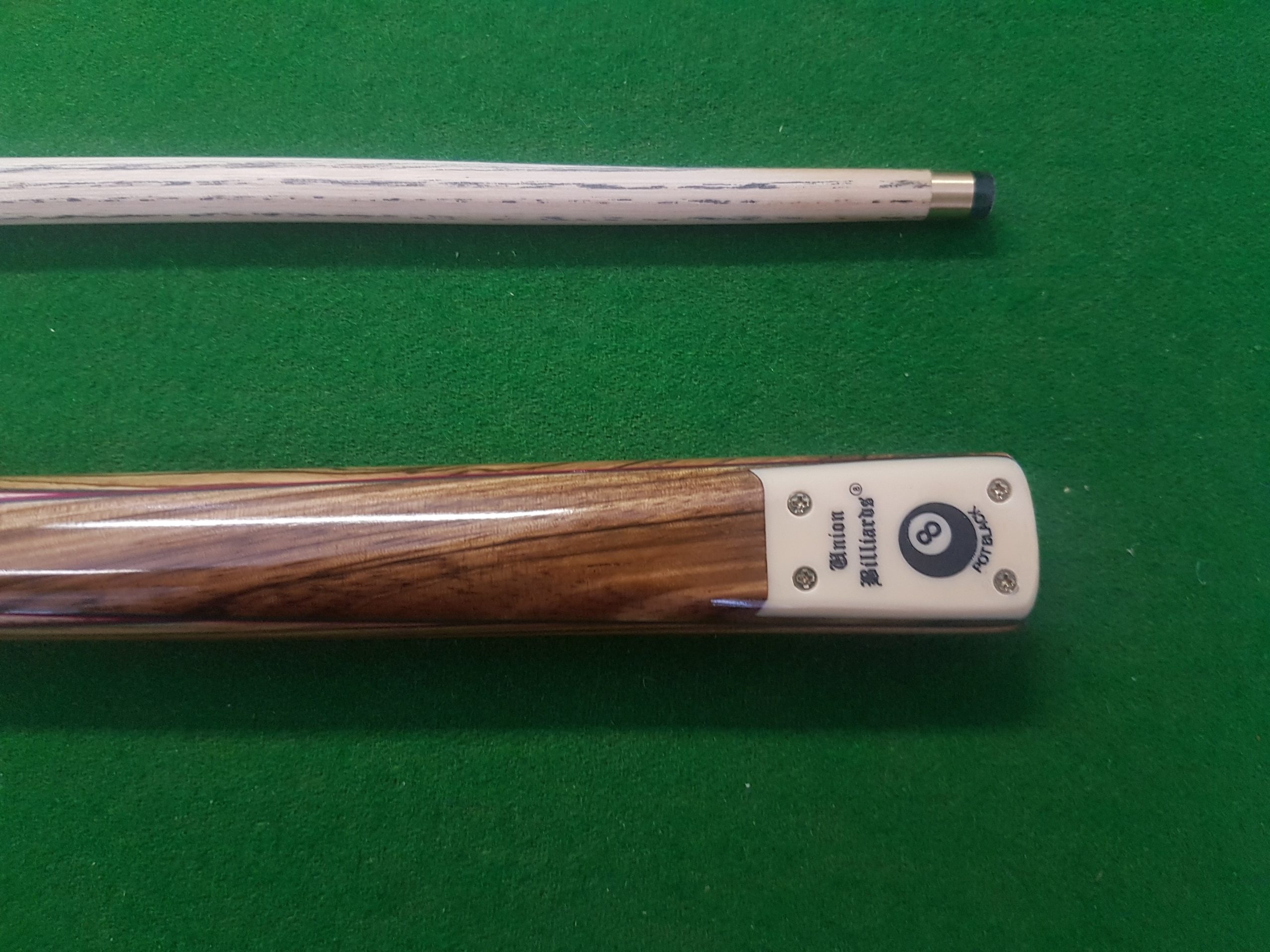Union Billiards Pot black 2 piece Cue with 9mm diamond tip. Weight 17 ounce